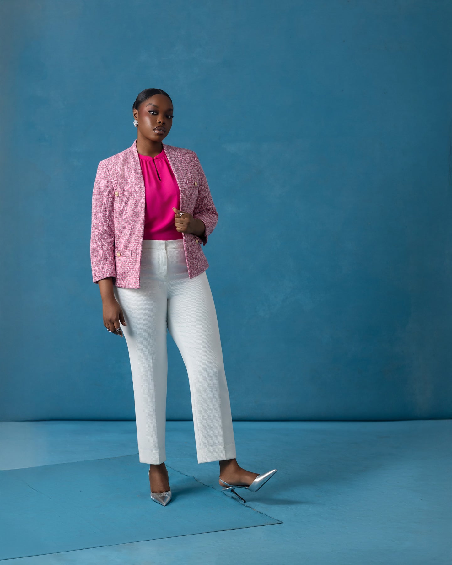 Tailored to perfection, the Prescott Pants bring modern polish to any look. Designed with a sleek, straight-slim leg and ankle-length cut, they create a clean, elongated silhouette that flatters every shape. The mid-rise fit ensures comfort and versatility, while functional pockets and a front-zip closure add a practical finish. Crafted from a smooth stretch blend, these trousers pair effortlessly with blouses, camisoles, and structured jackets for a refined, contemporary ensemble.